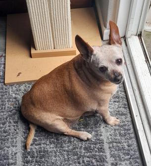 Hope came to us as a timid and shy girl who was very scared in the shelter. Very soon after arriving at her wonderful TOG foster home, it was evident that she is kind dog who likely will love being a lap dog. She is on a weight loss plan and, thankfully, appreciates her walks.She is about 18 lbs and about 9 years old